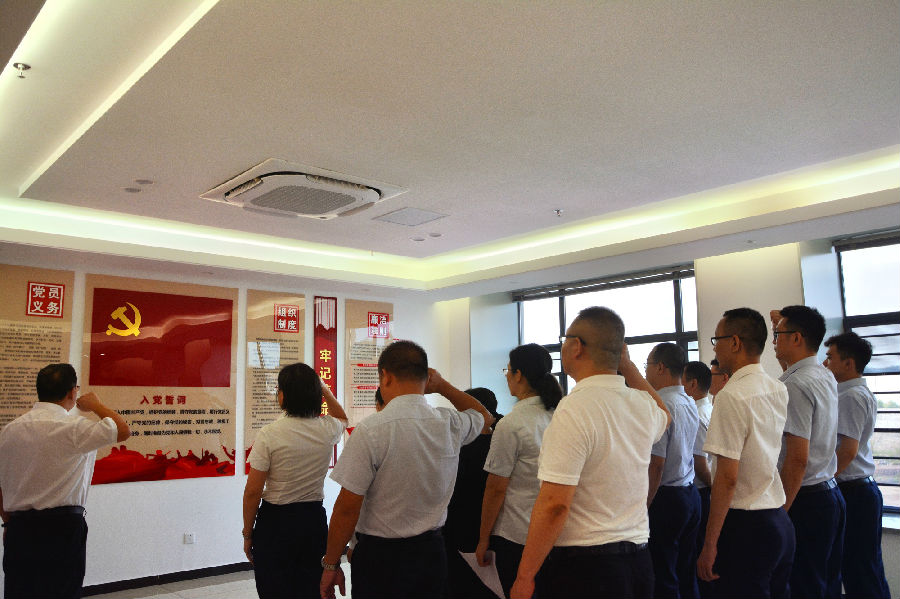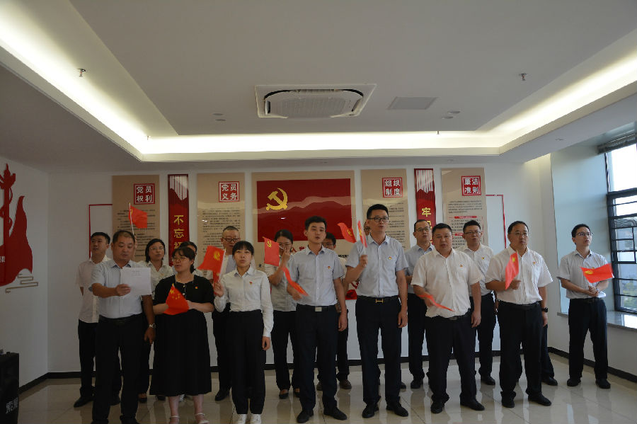 在五华惠民村镇银行党员活动室,全体党员面对党旗,举起右手,紧握拳头,庄严宣誓。铿锵有力的宣誓声久久回荡,宣示着五华行党员不忘初心、牢记使命,为满足人民对金融的需求、建设精品社区银行而不懈奋斗的坚定信念和决心。